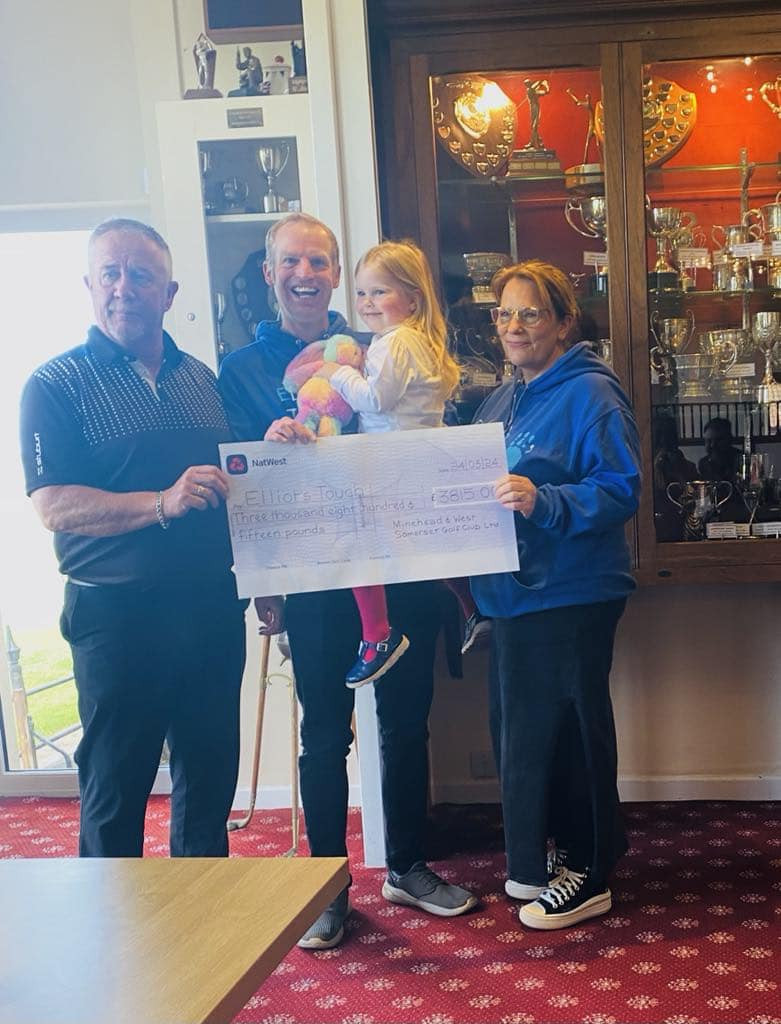 Minehead and West Somerset Golf club handed over £3815 to the charity having picked Elliot's Touch as their chosen charity.